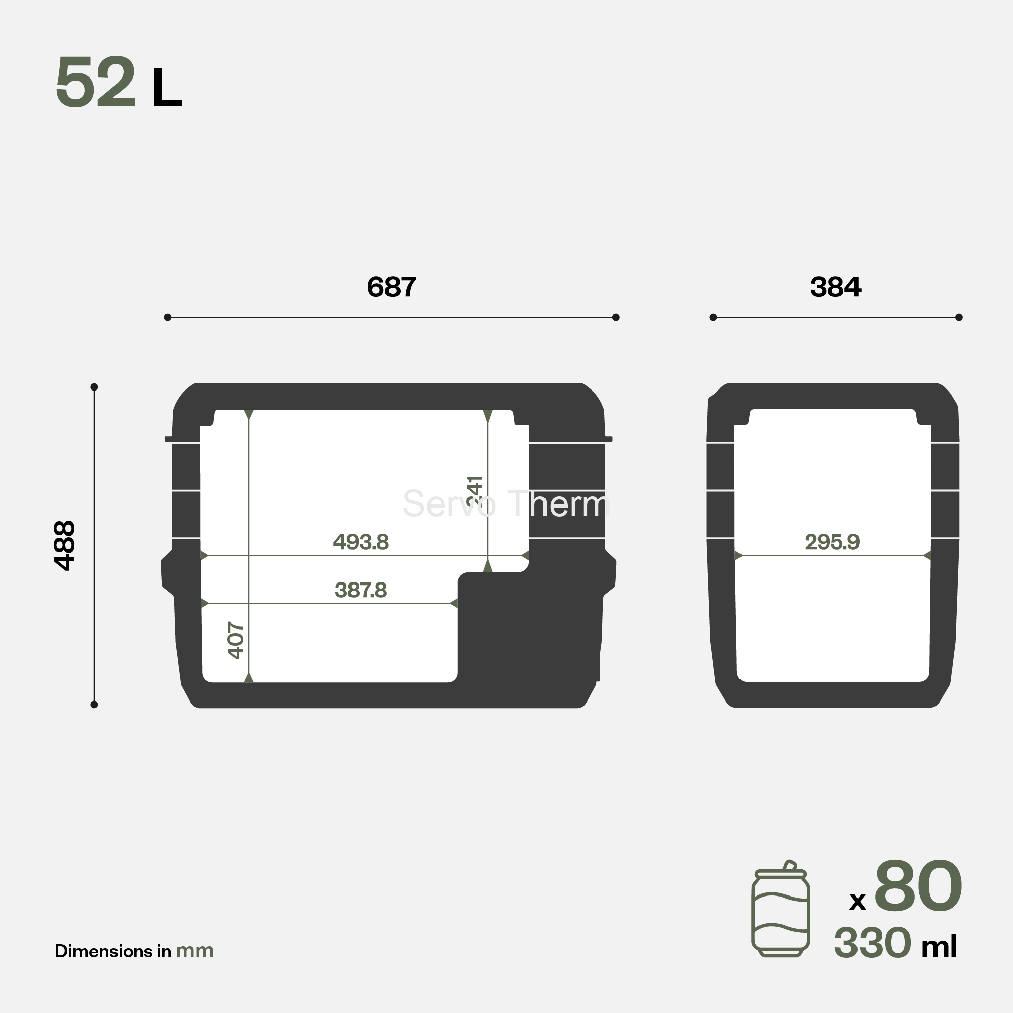 Pojemność 52 litrów pozwala na wygodne przechowywanie większej ilości produktów – od napojów po pełnowymiarowe opakowania żywności. To idealny wybór dla rodzin, ekip podróżniczych oraz użytkowników, którzy potrzebują większej przestrzeni chłodniczej bez rezygnacji z mobilności.